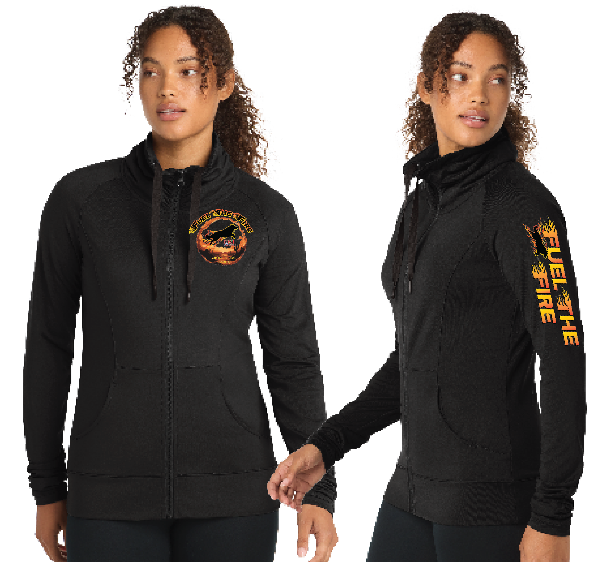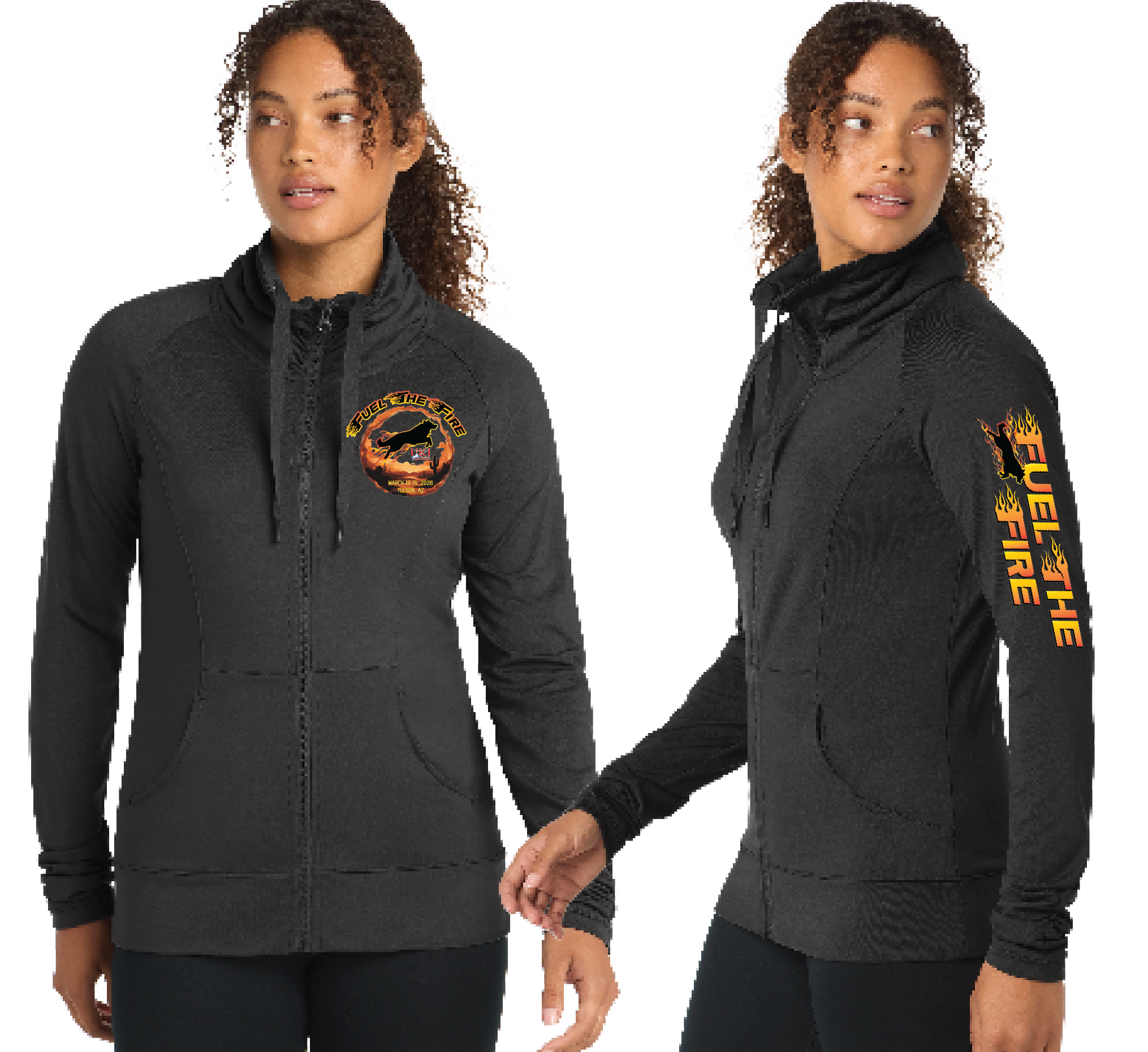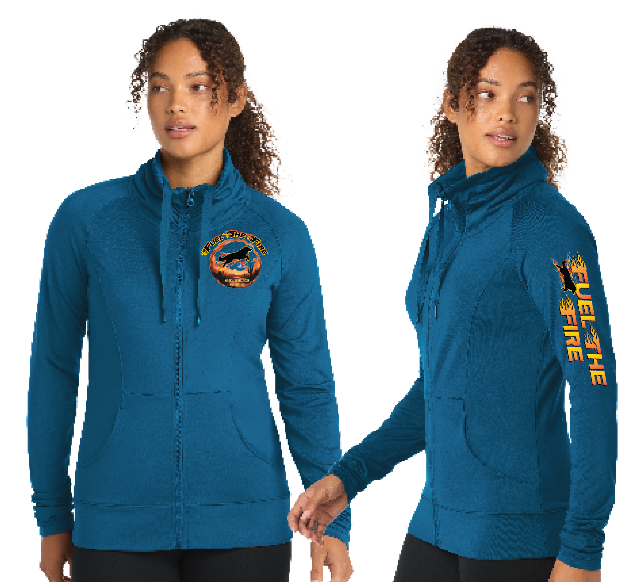 A stretchy, moisture-wicking performance jacket with a soft-brushed backing and unique cowl collar.