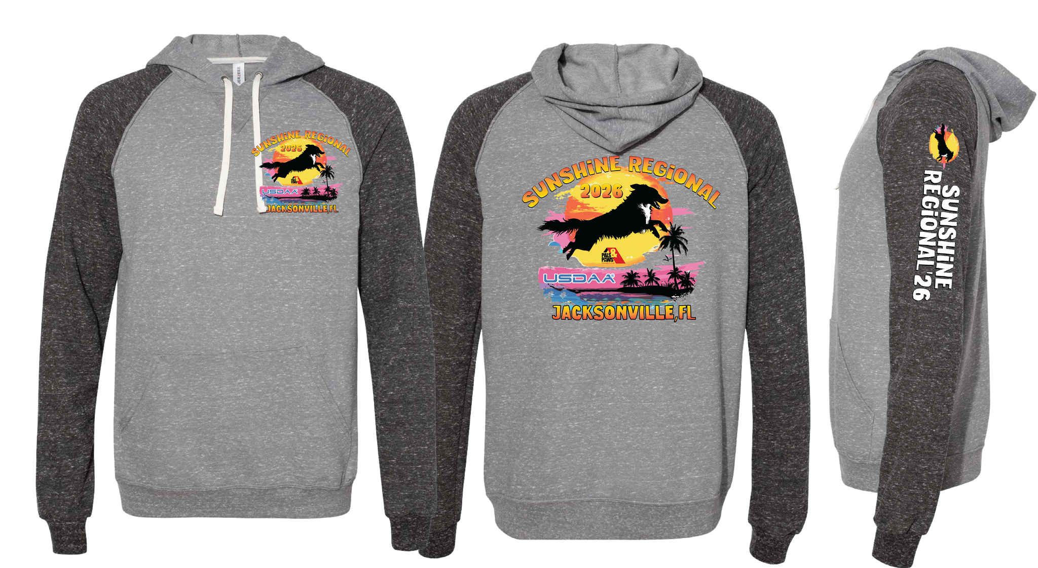 - Double-needle coverstitched hood, raglan sleeves, pocket openings and bottom band